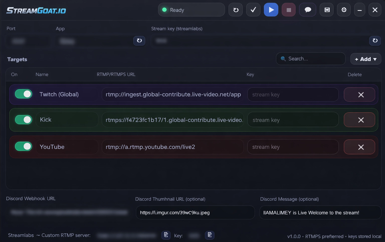 StreamGoat is a reliable RTMP fan-out hub for creators who need clean multi-platform streaming, automatic fallback, and straightforward license management.